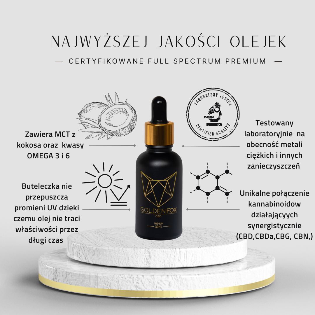 Produkty Golden Fox przechodzą restrykcyjne testy przeprowadzane przez niezależnie placówki laboratoryjne. Sprawdź certyfikat Golden Fox 500 mg/10 ml, który potwierdza wysoką jakość naszego produktu.